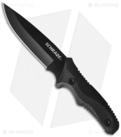 Schrade Fixed Blade Knife Full Tang Black TPE (5″ Black Plain) SCHF30
