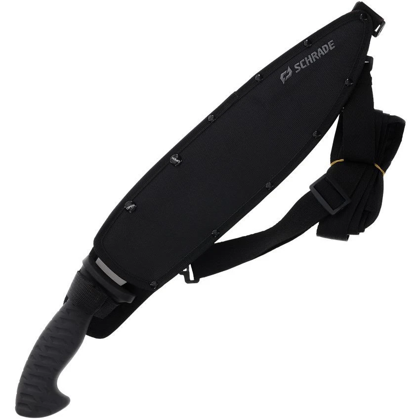 Model/Part Number – SCH1182507. Schrade Decimate Bolo Machete. 20.5″ (52.07cm) overall. 14″ (35.56cm) black oxide coated 3Cr13 stainless blade. Black rubber handle. Full tang. Black polyester belt sheath. Clam packed. Made in China.