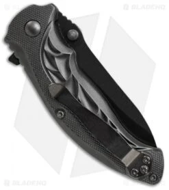 - Black finished 7Cr17MoV stainless steel blade with thumb stud opener.