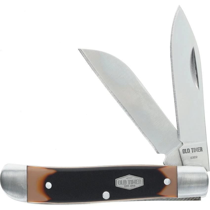 Model/Part Number – SCHP1188050. Schrade Knives Trapper Bottle Opener Set. Old Timer. 3.13″ (7.95cm) closed. Satin finish stainless clip and sheepsfoot blades. Sawcut Delrin handle. Stainless bolster(s). Comes with 4.75″ overall bottle opener. Clam packed. Made in China.