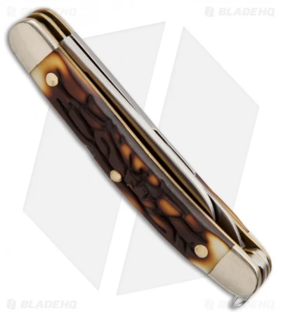 This Uncle Henry classic Gambler pocket knife is an American tradition. Often found in many of our grandfather pockets, this folding knife features a satin finished stainless pen blade and scissors with slip joint construction. The Staglon handle features brass liners, polished nickel silver bolsters, heat treated back springs and brass rivet construction. Includes shackle.